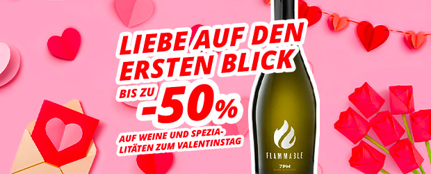 Wenn der Funke überspringt, sollte der Wein bereits bereitstehen. Entdecken Sie hier eine Auswahl an Weinen, Accessoires und Spezialitäten, perfekt für den Valentinstag, mit Rabatten von bis zu -50%. Denn Liebe auf den ersten Blick gibt es wirklich. Und sie beginnt oft mit dem richtigen Glas.